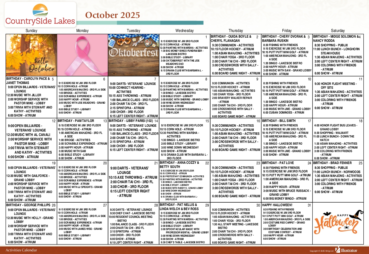 We’re pretty social here at CountrySide. Day and night, we have multiple activities going on throughout our grounds. So rest assured, you’ll be able to craft your perfect day. Here are a few of the things we’re doing this month…